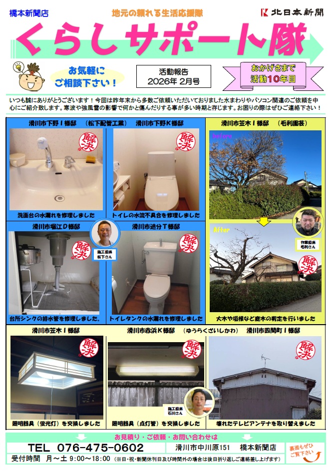 【祝10年目突入】くらしサポート隊 活動報告バックナンバー 2026年2月号